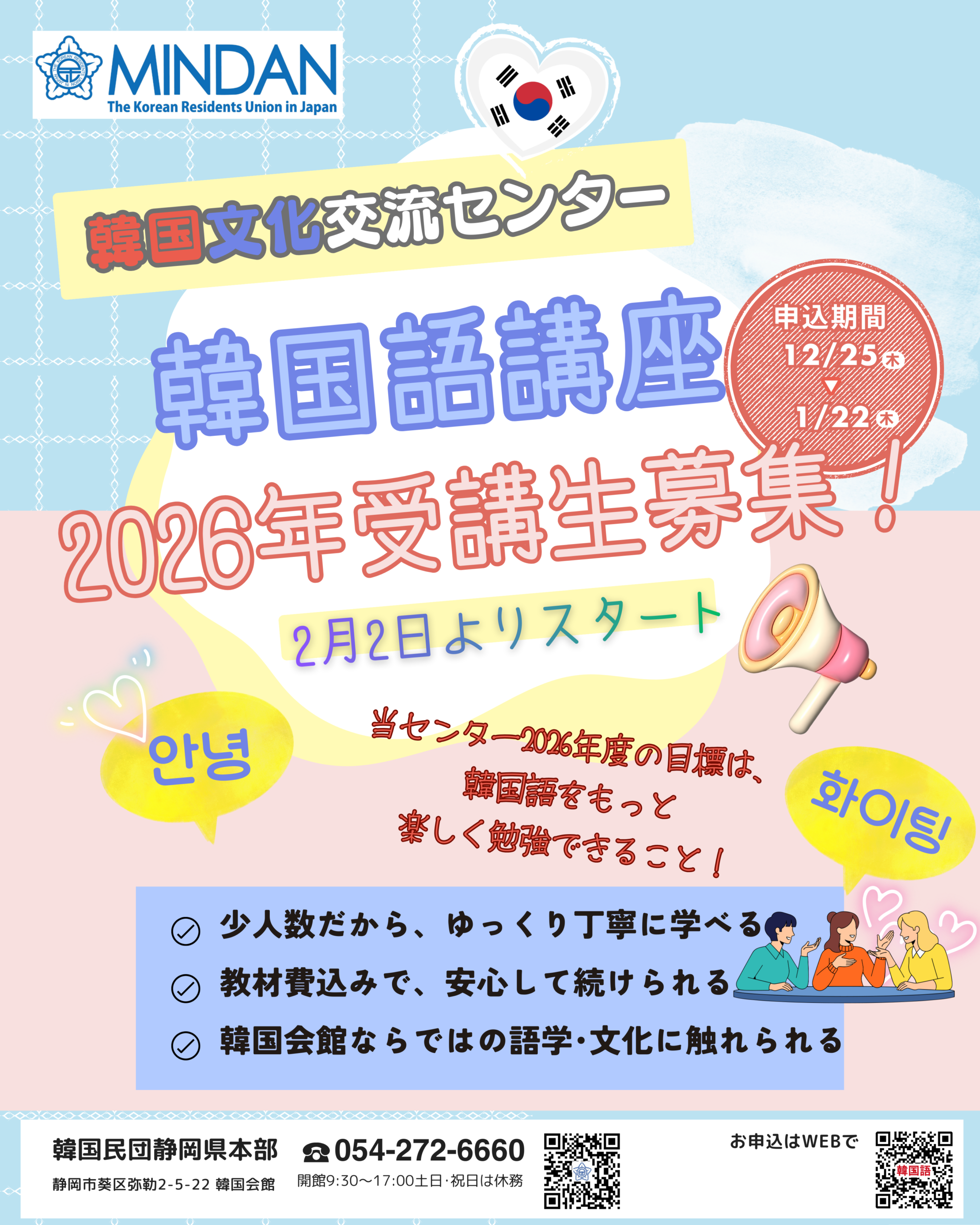 あんにょんはせよ!当センターの講座へ興味を持って頂き、有難うございます。