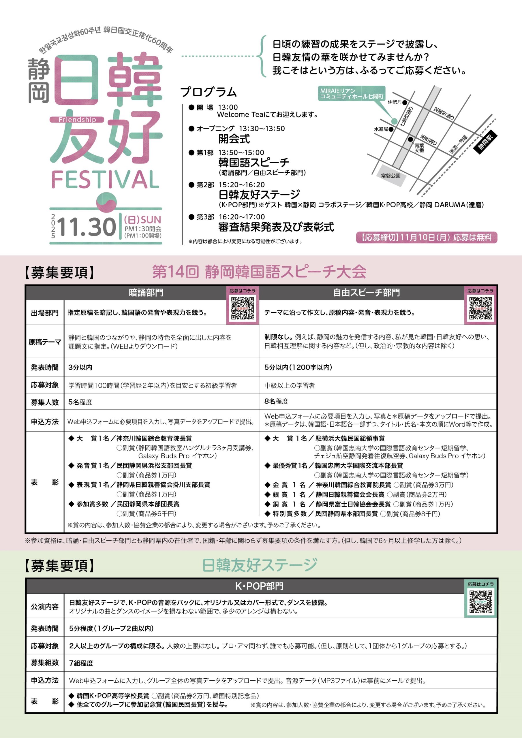 【後 援】 | 駐横浜大韓民国横浜領事館、韓国在外同胞庁、神奈川韓国綜合教育院、 静岡県、静岡市、静岡県教育委員会、 (公財)静岡県国際交流協会、(一財)静岡市国際交流協会 |